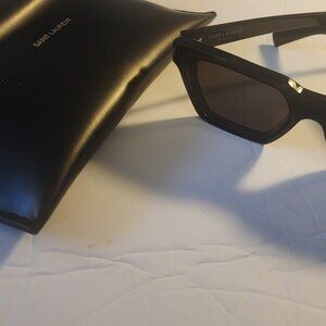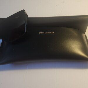 The case and the temple (arm) of the sunglasses clearly show the brand name "SAINT LAURENT" (formerly Yves Saint Laurent).