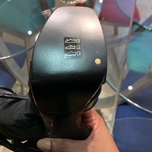 Saint Laurent Paris Black Leather Glitter Tribute Platform Sandals Size:36 (Fits 6.5 )