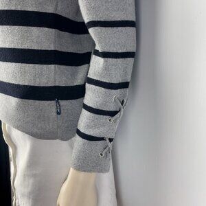 SAINT-JAMES Nautical Striped Wool Blend Knitted France Grey Black sz S M