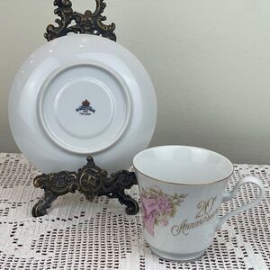 SAJI made in Japan Teacup and Saucer || 20th Anniversary written in French ||