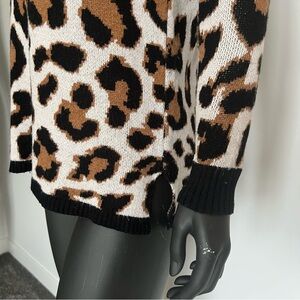 ⚪️ 🐑 SAKS FIFTH AVENUE/ CASHMERE WOOL BLEND CHEETAH PRINT MOCK NECK SWEATER