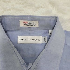 SAKS FIFTH AVENUE Men's Button Up Shirt Long Sleeve Cotton Oxford Blue