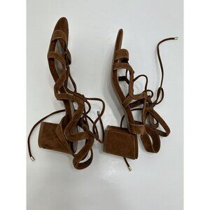 SAKS FIFTH AVENUE Size 8 Suede Leather Strappy Gladiator Sandals Ankle Tie DARLA