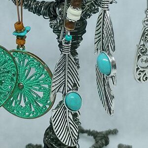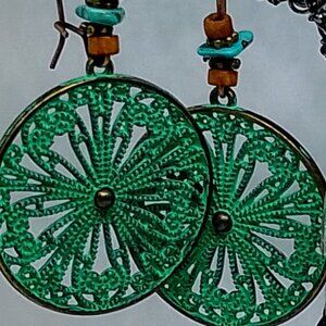 SALE! 3 PAIR! BOHO EARRINGS, Green Patina, Silvery BLUE BUNNY'S BOHO BAUBLES