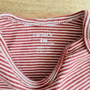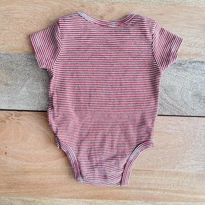 Excellent condition. No rips, holes or stains. Rust orange and white stripes, short sleeve bodysuit.