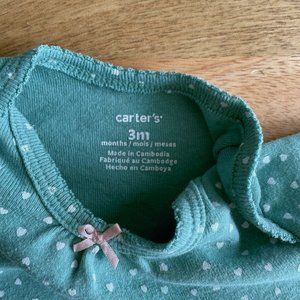 🧸 SALE! (5/$15, 8/$22, 12/$30) Carter’s bodysuit 3m baby girl light green heart