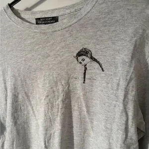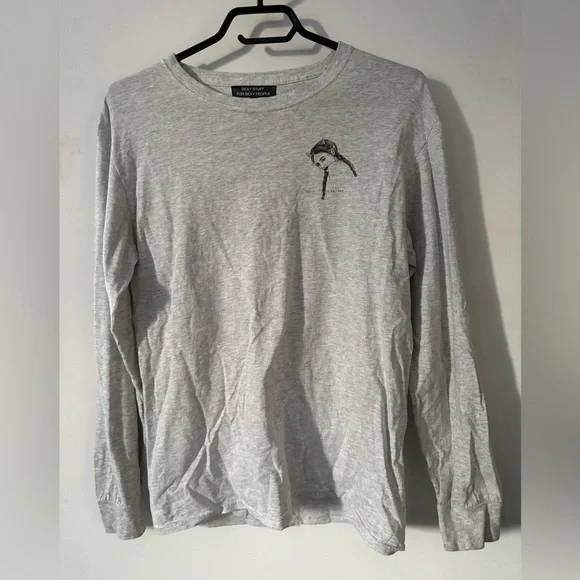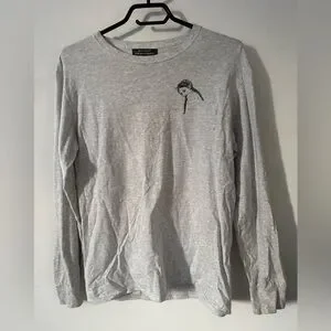 Melodie Perrault Casual long sleeve tee in light gray. Features a subtle design on the chest. Ideal for everyday wear.