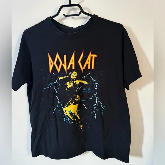 Stylish Doja Cat black graphic t-shirt featuring a vibrant design. Perfect for fans and casual wear. XS but fit like more S
