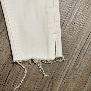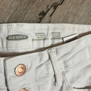 High rise skinny jeans from Old Navy. Size 4, button fly, cropped length with fraying and split seam at ankle.
