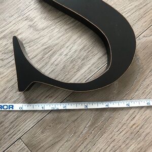 Large wall letter, hangs easily with tiny flat nails. 8 inches tall, 5 inches wide. Sharp look in matte black.