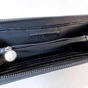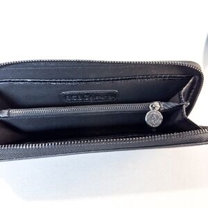 Chic and spacious BCBGeneration long wallet in black faux leather with a glossy snakeskin texture. Features a sleek silver zip closure, interior zip pocket, and plenty of card slots to keep you organized in style.