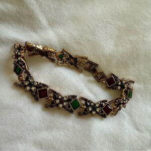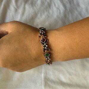 Vintage style bracelet Brand new never used Color: bronze/ dark gold Green and red stones