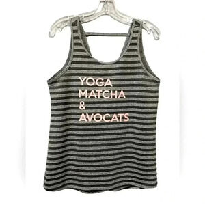 Strike a balance between comfort and style with this charming stretch camisole, perfect for the active wardrobe. The tank features a playful 'YOGA MATCHA & AVOCATS' front print that adds a touch of whimsy to the classic design. Its sleeveless cut with a racerback design offers freedom of movement, making it ideal for yoga sessions or casual outings. New 🏷️ / 🚭 / 📦 carefully packaged.
