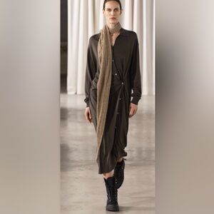 Really soft fabric. Falls beautifully, has side pockets. From the top of the shoulder To the bottom of the hem is 36”. Super cute!!