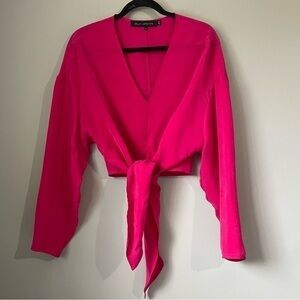 SALLY LAPOINTE TYE UP PINK LONG SLEEVE BLOUSE size 4
