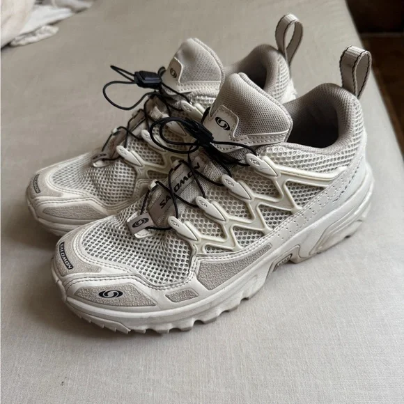 Salomon trail sneakers in off-white. Perfect for outdoor activities.