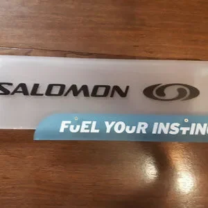 Hard to find Salomon advertising display. Fuel your instinct. Frosted plastic.