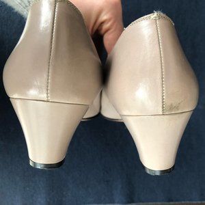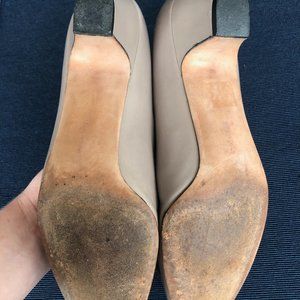 Super elegant neutral stone colour low heel leather pumps. V good vintage condition, lightly worn with small scuff at the back of the right shoe (see pictures)
