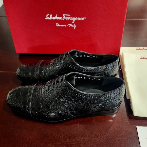 SALVATORE FERRAGAMO Black Crocodile Leather Derby (Black)
