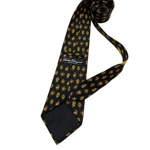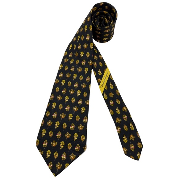 SALVATORE FERRAGAMO Black Fruit Leaf Silk LUXURY Tie ITALY