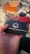 Elegant black leather card holder with a shiny silver Omega emblem. Ideal for a sophisticated touch.