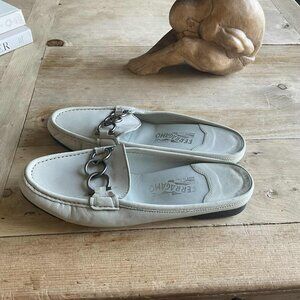 Classic meets comfort with these authentic Salvatore Ferragamo slip-on driver mules. Made Italy crafted from supple leather with timeless Italian design.
