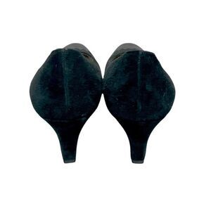 SALVATORE FERRAGAMO Black Suede Pumps High Heel Shoes With Black Patent Leather Cap Toe