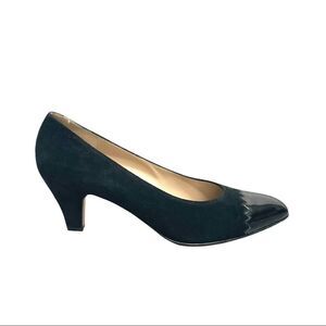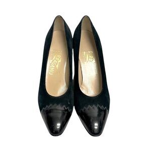 SALVATORE FERRAGAMO Suede Pumps Heel Shoes Patent Leather Black 8