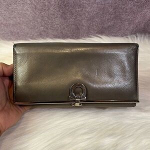 SALVATORE FERRAGAMO gancini long wallet in gun metal