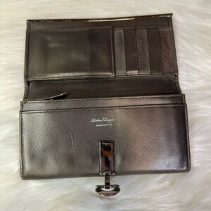 SALVATORE FERRAGAMO gancini long wallet in gun metal