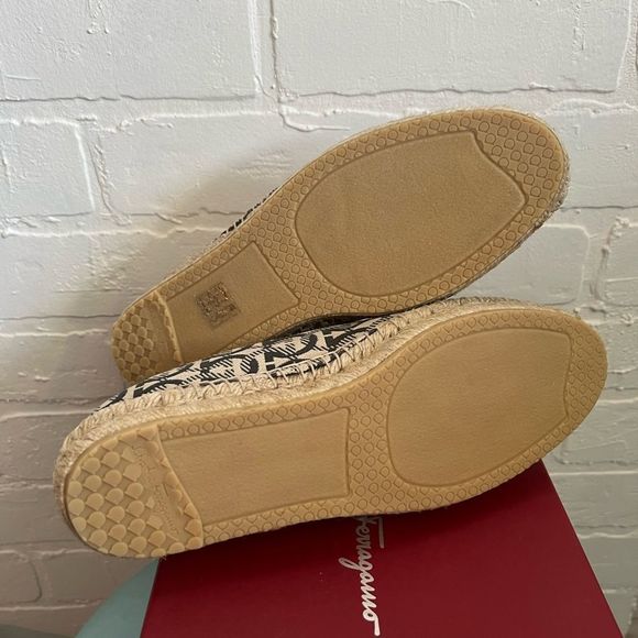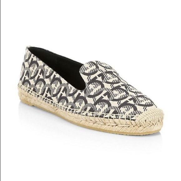 Salvatore Ferragamo "Sue" jacquard logo fabric slip-on espadrille.