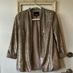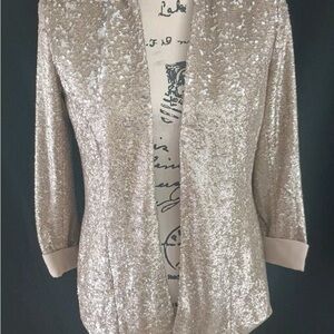 SAM EDELMAN | Champagne Gold Sequin Blazer Open Front 3/4 Sleeves