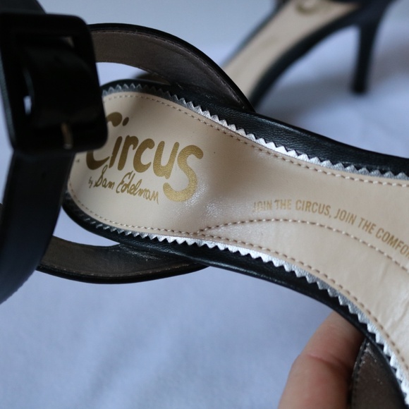 SAM EDELMAN Circus Like New Sling Back Heels Faux Snake Skin Buckle Black Taupe