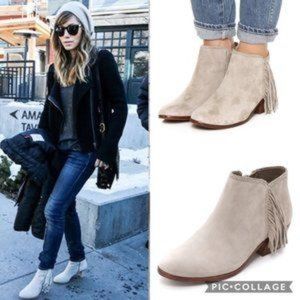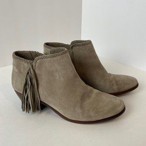 SAM EDELMAN Paige Suede Leather Fringe Ankle Booties with Braid Detail S…