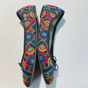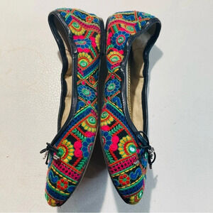 SAM EDELMAN Sz 9 Felicia Boho Embroidered Almond Toe Ballet Flats. Colourful and fun Iconic ballerina freshened up with new colours and materials. Perfect for all day wear