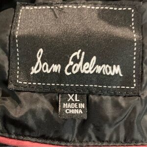 SAM EDELMAN Sz XL Hooded Shiny Reflective Back Snap Tabs Zipper Pockets Front Puffer Parka Jacket Coat. Super cozy and stylish. Comfort while looking trendy and being warm. Goth. Punk. Rocker vibes. Oversized in case you want to wear a sweater.