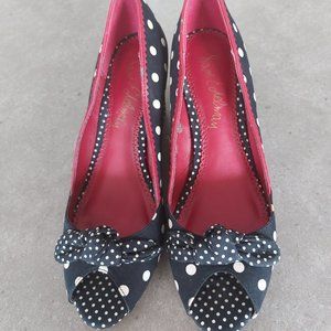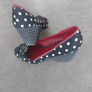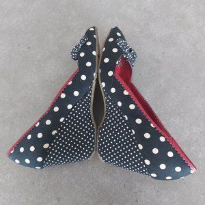 ACCENTS: Swiss dot bow on vamp ** Red faux leather scalloped edging around shoe except vamp