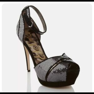 Sam Edelman PAISLEY Sequin Ankle Strap Platform Gray silver Size 8