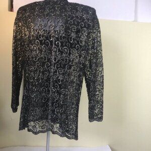 SAM USA New Lace Sheer Metallic Evening Tuxedo Blazer Jacket Gold Black Scalloped Hem, size Medium