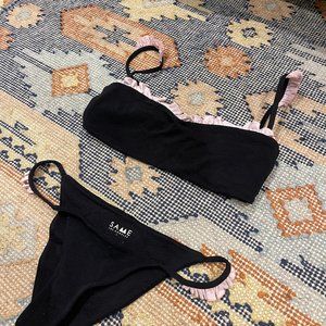 SAME Los Angeles Black and Pink Ruffle Bikini - Size Large