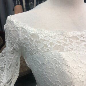 SAMPLE A-Line Lace Long Sleeve Wedding Dress, Off-the-shoulder Bateau, POCKETS