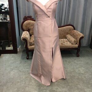 SAMPLE Dusty Rose Bridesmaid Dress Champagne LEG SLIT! Off-The-Shoulder Portrait