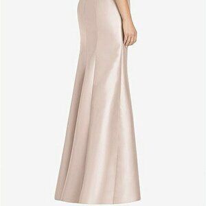 Beautiful Dusty Rose, Blush Champagne Bridesmaid Mother of the Bride / Groom by Alfred Sung for Dessy. In Silky Satin Mikado Georgette gorgeous fabric (Colour is called Cameo). It is beautifully tailored with an elegant neckline and extremely flattering cut/skirt . The straps and back are gorgeous, but this silhouette is amazing. This gown is absolutely stunning. Very elegant! :)