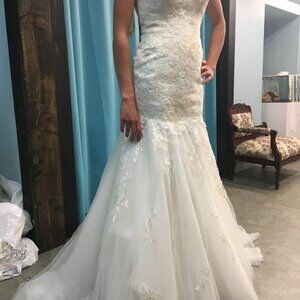 SAMPLE Fit & Flare Sexy Lace Wedding Dress Romantic Mermaid, Light Gold & Ivory