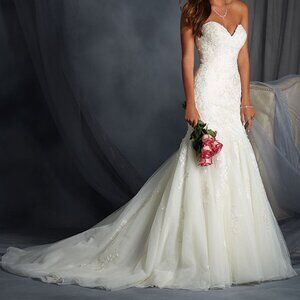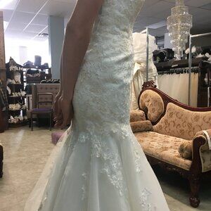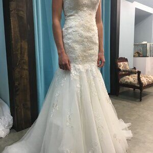 Please keep in mind that ALL designer gowns require altering, as they are made for very tall, very large-breasted women, and it's the alterations that give that million-dollar fit! Most people require a hem, a bustle, and usually adjustments around the bust and straps. This is the case with all designer gowns. These gowns can easily be taken in 2 sizes by a professional bridal seamstress, and can be let out a bit as well. Please consult with your seamstress and alterations questions!