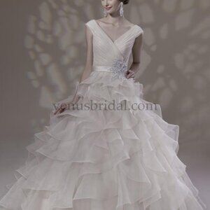 This gown is brand new, with tags, but has been tried on a few times, and worn for a photo shoot for our bridal show. It is in very good sample condition, with nothing glaring to note at the time of this listing. Better pics to follow.