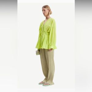 SAMSOE Neon Green Button-Up Top