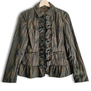 SAMUEL DONG Ruffle Front & Hem Zip-Up Front Blazer Black & Brown Abstract Sz XXS