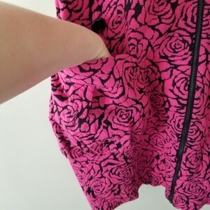Rose Pattern Midi Shift zippered Front midline Dress. Size XS.