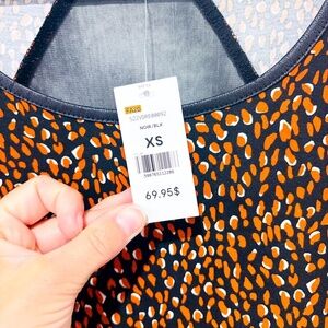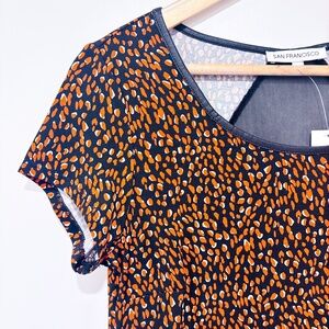 SAN FRANCISCO Black orange abstract print short sleeve dress | X-Small *